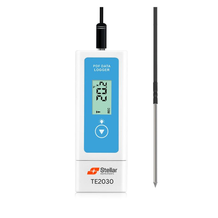 The TE2030 Temperature Data Logger with External Probe is an advanced monitoring device designed for precise temperature tracking in transportation, storage, and testing processes. This compact data logger is equipped with a wide measurement range of -200°C to 250°C, making it ideal for use in various industrial applications. The TE2030 features a user-friendly design that allows you to generate PDF reports directly by plugging the device into a computer—no additional software or drivers are needed. With its built-in USB interface, LCD display for real-time status updates, and long battery life, the TE2030 is a reliable and efficient tool for maintaining optimal temperature conditions in sensitive environments.