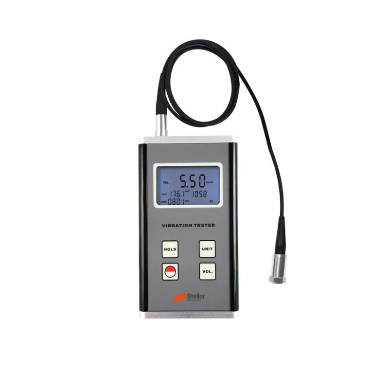 Main Unit, Magnetic Suction Seat, 3-Axis Piezoelectric Accelerometer Probe (Cone), Probe (Spherical), Carrying Case, Manual Book |